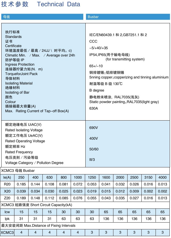 XCMC3 母線產(chǎn)品特征