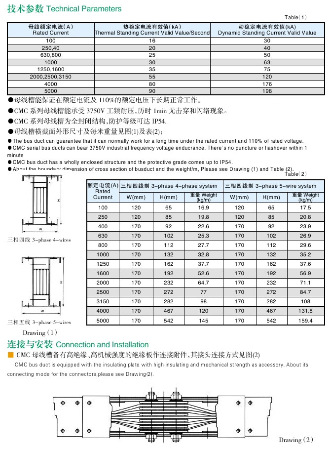 CMC系列密集絕緣母線槽適用于交流三相四線、三相五線制,頻率 50~60Hz,額定電流在 400~3200A 的供配電系統(tǒng),作為工礦、企事業(yè)和高層建筑中供配電系統(tǒng)輸出電能之用,特別適合于車(chē)間、老企業(yè)的改造。