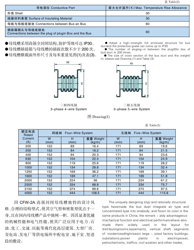 CFW-2A 高強(qiáng)封閉母線專供交流三相四線,三相五線制,頻率 50 ~ 60Hz,額定電壓至 660V,額定工作電流 100 ~ 1250A 的供配電系統(tǒng)傳輸電能之用。