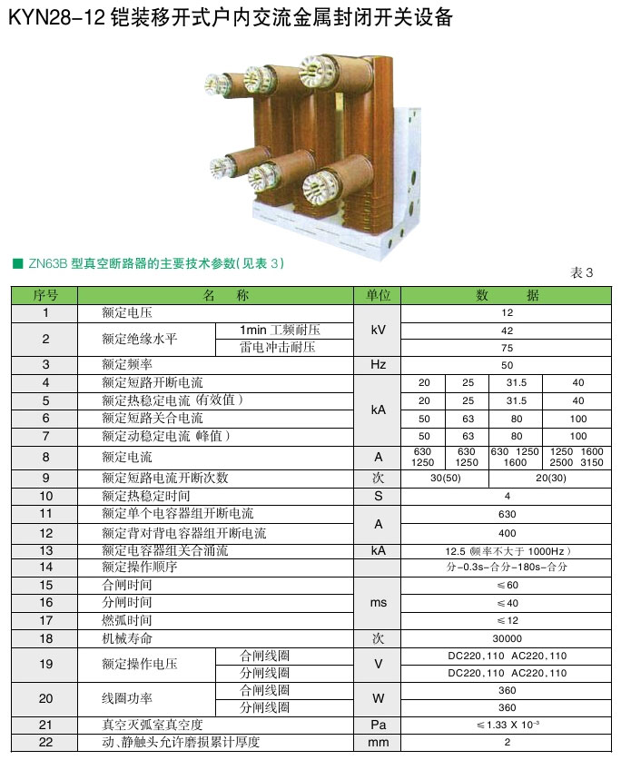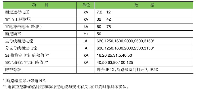 KYN28-12 型開關(guān)柜主要技術(shù)參數(shù)(見下表)