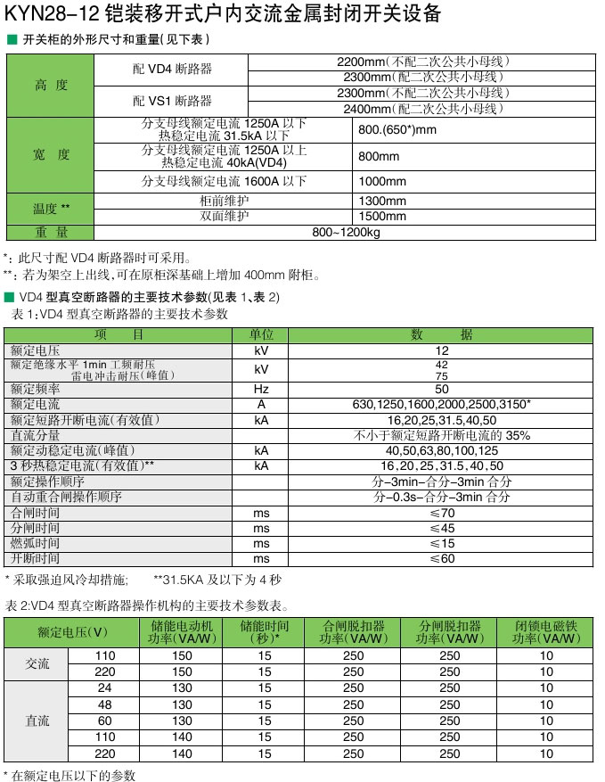 KKYN28-12 鎧裝移開式戶內(nèi)交流金屬封閉開關(guān)設(shè)備(以下簡(jiǎn)稱開關(guān)柜)系三相交流 50Hz 單母線及雙母線分段系統(tǒng)的戶內(nèi)成套配電裝置,用于接受和分配 3-10kV 的網(wǎng)絡(luò)電能并對(duì)電路實(shí)行控制及保 護(hù)、 監(jiān) 測(cè)。 本開 關(guān) 柜能 滿足 IEC-298、GB3906、DL404 等標(biāo)準(zhǔn)要求,并具備“五防”功能,配置 ABB 公司 VD4 型,或國(guó)產(chǎn)型 VS1 高性能真空斷路器,并可配置真空接觸器、負(fù)荷開關(guān),是一種理想的配電裝置。