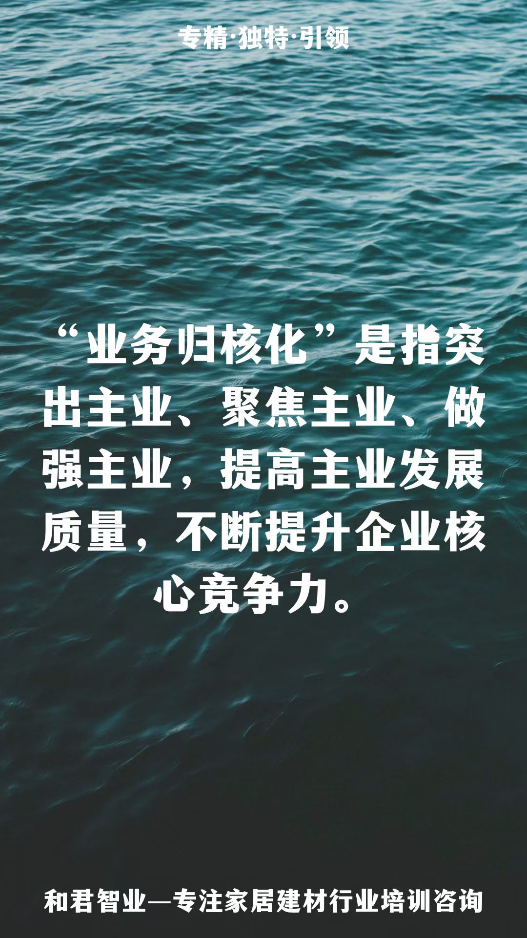 劉登榜 北京和君智業(yè)教育科技有限公司總經(jīng)理 2023中國百強講師 大商公司化運營專業(yè)顧問 資深實戰(zhàn)派講師 戰(zhàn)略營銷語錄:業(yè)務(wù)歸核化! “業(yè)務(wù)歸核化”是指突出主業(yè)、聚焦主業(yè)、做強主業(yè),提高主業(yè)發(fā)展質(zhì)量,不斷提升企業(yè)核心競爭力。
