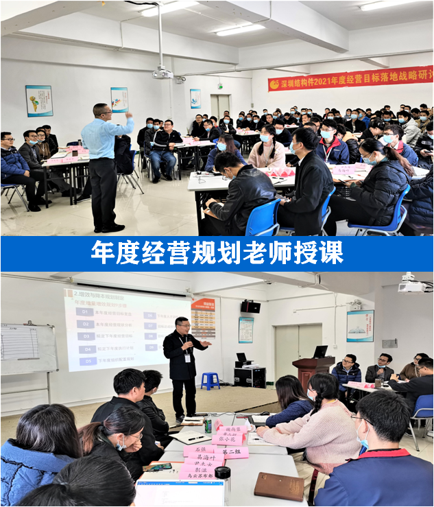 年度經(jīng)營(yíng)規(guī)劃會(huì)第一天早上8點(diǎn),深圳結(jié)構(gòu)件公司總經(jīng)理回顧了2020年內(nèi)外部環(huán)境對(duì)公司的影響,指出了2021年公司經(jīng)營(yíng)管理需要突破的重點(diǎn)。 年度經(jīng)營(yíng)規(guī)劃會(huì)第一天上午,財(cái)智菁英咨詢老師講授了《年度經(jīng)營(yíng)規(guī)劃》,重點(diǎn)剖析了年度經(jīng)營(yíng)目標(biāo)與年度經(jīng)營(yíng)計(jì)劃的制定,并著重強(qiáng)調(diào)了年度經(jīng)營(yíng)目標(biāo)與年度經(jīng)營(yíng)計(jì)劃如何高效達(dá)成。