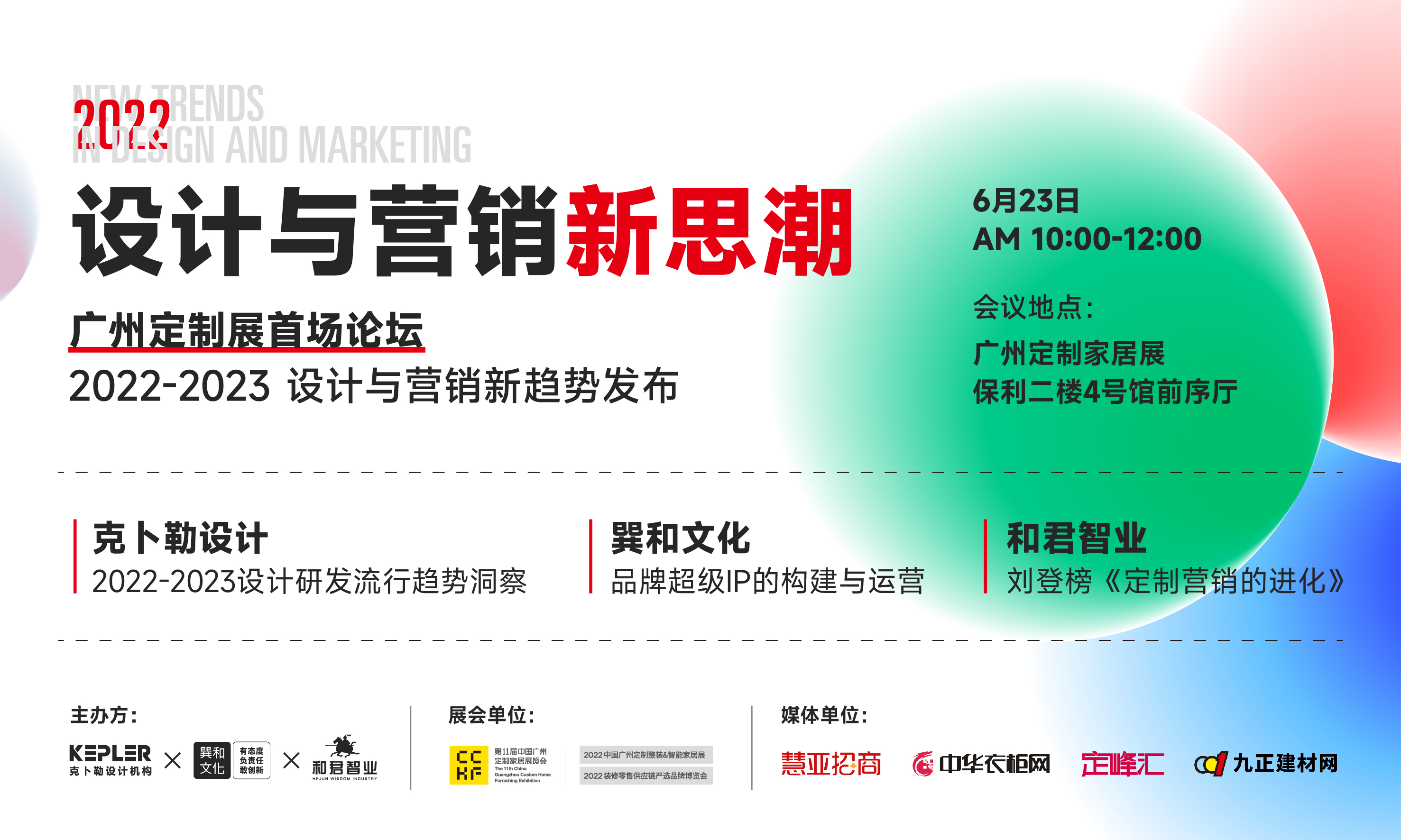 時(shí)間:6月23日 早10:00-12:00 地點(diǎn):廣州定制家具展 保利二樓4號(hào)館前序廳