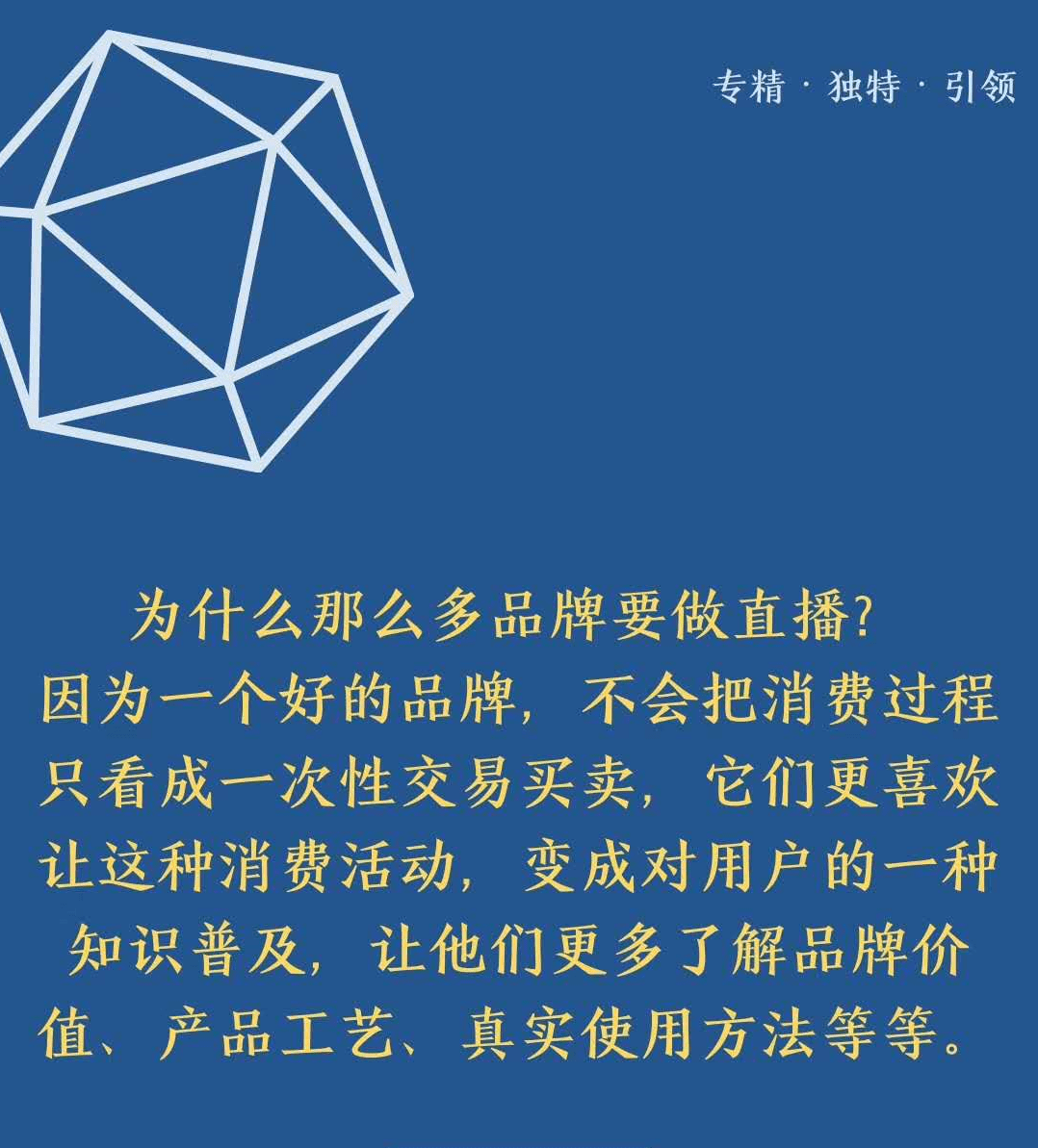劉登榜 專注家居建材行業(yè)戰(zhàn)略營銷咨詢15年 北京和君智業(yè)教育科技有限公司總經(jīng)理 中國家居建材行業(yè)戰(zhàn)略營銷研究中心發(fā)起人 大商公司化運(yùn)營專業(yè)顧問 資深實(shí)戰(zhàn)派講師 戰(zhàn)略營銷語錄:搶占場景! 為什么那么多品牌要做直播?因?yàn)橐粋€(gè)好的品牌,不會(huì)把消費(fèi)過程只看成一次性交易買賣,它們更喜歡讓這種消費(fèi)活動(dòng),變成對(duì)用戶的一種知識(shí)普及,讓他們更多了解品牌價(jià)值、產(chǎn)品工藝、真實(shí)使用方法等等。 ![]() 【怕停滯,找登榜,戰(zhàn)略營銷助增長!】 |