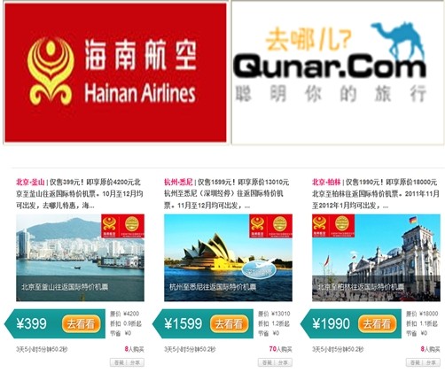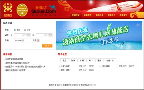 2010年6月,海南航空與去哪兒團購網(wǎng)站合作開設(shè)了”海航-去哪兒”旗艦店,獲得了成功;之后在2011年5月,他們又合作推出了特價機票團購活動,為旅客提供性價比更高的機票團購產(chǎn)品,通過團購活動獲得大量旅客的實際乘機體驗,從而得到了良好的推廣效果。