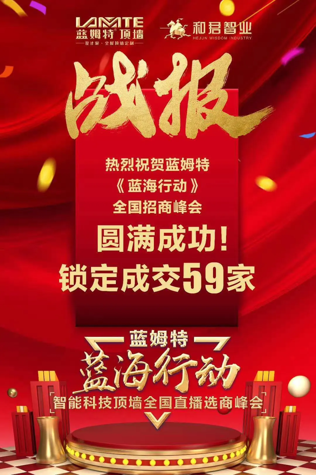 由劉登榜老師團(tuán)隊策劃并執(zhí)行的藍(lán)姆特《藍(lán)海行動》智能科技頂墻全國直播招商峰會6月17日-7月7日歷時21天圓滿落地??! 新模式,新方法,新機(jī)遇!感謝藍(lán)姆特頂墻攜手合作! 為行業(yè)前行!為企業(yè)助力! 2020真賦能·促增長,加油! ![]() ![]()