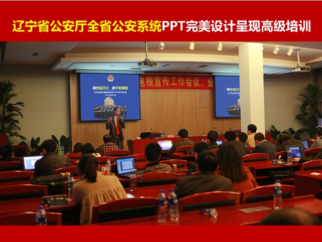 PPT講師李寶運為遼寧省公安廳進行PPT完美設計呈現(xiàn)培訓 2013年4月11日,PPT高級講師李寶運為遼寧省公安廳全省公安系統(tǒng)進行了為期半天的PPT完美設計呈現(xiàn)培訓課程。 由遼寧省公安廳政治部組織的此次PPT培訓是全省公安系統(tǒng)系列培訓的一部分,參加此次PPT培訓的全省公安系統(tǒng)學員共計40多人。 李老師針對PPT在公安系統(tǒng)內(nèi)部匯報、宣傳演示等工作中的常見應用,定制PPT培訓課程。本次全面覆蓋PPT設計呈現(xiàn)與高級制作的核心知識點。經(jīng)過半天的全面學習和訓練,參訓學員對優(yōu)秀PPT的標準、正確的制作流程、PPT結(jié)構化視覺化、優(yōu)化呈現(xiàn)的方法有了全面了解,對PPT中文字、形狀、圖片、圖表、圖示的運用有了深刻把握,對模板設計、版式美化、完美演示等知識點有了基本的掌握。 李老師還為大家制作了公安系統(tǒng)標準模板,推薦了很多PPT實用資源。此次PPT培訓課程深受好評,大家紛紛表示:課程的針對性和實用性非常強,課堂氛圍非常好!通過此次深入學習,大家的PPT設計呈現(xiàn)水平有了較大提高!可惜時間很短,想學的又太多,大家都希望有機會能再聽到李老師的培訓課。