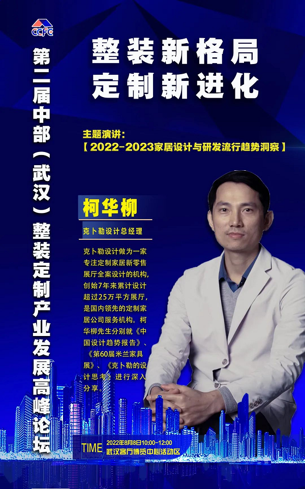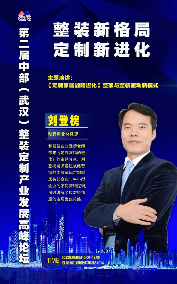 第二屆中部(武漢)整裝家居&門窗博覽會8月8日將在武漢盛大舉辦!劉登榜老師將會在開幕峰會做《定制新進(jìn)化》主題分享,歡迎大家一起游武漢,看中部展! 第二屆中部(武漢)整裝家居&門窗博覽會由湖北省家具協(xié)會、湖北省門業(yè)協(xié)會、湖北省窗業(yè)協(xié)會武漢市家具行業(yè)協(xié)會聯(lián)合主辦,湖北省室內(nèi)裝飾協(xié)會、湖北省室內(nèi)設(shè)計行業(yè)協(xié)會、華中建材大市場協(xié)辦的2022第二屆中部武漢整裝定制家居及門窗博覽會于8月8日-10日在武漢客廳博覽中心舉辦。為全國眾多參展企業(yè)提供更好更精準(zhǔn)的招商服務(wù),為參展企業(yè)搭建展示品牌形象,實現(xiàn)高效快速招商,發(fā)展省、市、縣級經(jīng)銷商、代理商、加盟商,建立和完善市場銷售渠道的一站式綜合展覽平臺。 同期舉辦的2022第二屆中部(武漢)整裝定制產(chǎn)業(yè)發(fā)展高峰論壇,旨在匯聚我國中部家具定制協(xié)會,龍頭企業(yè)代表和本地定制品牌代表等,順應(yīng)整裝定制產(chǎn)業(yè)發(fā)展的新趨勢,尋找新商機(jī)。當(dāng)前,整裝定制行業(yè)迎來了百家爭鳴的發(fā)展?fàn)顟B(tài):市場競爭加劇、渠道多元化、消費需求更新快,在如此復(fù)雜的市場環(huán)境中,整裝定制產(chǎn)業(yè)如何在市場之中實現(xiàn)進(jìn)化增長,搶占一席之地?2022第二屆中部(武漢)整裝定制產(chǎn)業(yè)發(fā)展高峰論壇以提升生產(chǎn)效益、優(yōu)化市場結(jié)構(gòu)、打造更有競爭力的產(chǎn)品為主要方向,為中部地區(qū)乃至全國的整裝定制產(chǎn)業(yè)品牌建設(shè)探尋新思路,新方法。 01 NEWS 時間/地址 時間:8月8日上午10:00-12:00 地址:武漢客廳文化博覽中心活動區(qū) 02 NEWS 擬邀嘉賓 中部家具定制協(xié)會代表: 湖北省經(jīng)濟(jì)和信息化廳消費品處 湖北省裝飾行業(yè)管理辦公室 湖北省家具協(xié)會 江西省家具協(xié)會 湖南省家具協(xié)會 湖北省窗業(yè)協(xié)會 湖北省門業(yè)協(xié)會 湖北省室內(nèi)裝飾行業(yè)協(xié)會 湖北省室內(nèi)設(shè)計協(xié)會 武漢市家具行業(yè)協(xié)會 …… 部分企業(yè)代表: 伊戀、一新、柏高、歐派速裝、鑫漢柜族…… 經(jīng)銷商代表:本地加工廠負(fù)責(zé)人50-60人、定制產(chǎn)業(yè)鏈經(jīng)供應(yīng)商50-60人、優(yōu)秀室內(nèi)設(shè)計師200人 03 NEWS 亮點預(yù)告 HIGHLIGHT01—— 凝聚產(chǎn)業(yè)鏈,加速發(fā)展中部地區(qū)整裝定制產(chǎn)業(yè) 本次大會由2022中部武漢整裝定制門窗展組委會聯(lián)手湖北泛家居聯(lián)盟,同時匯集多家行業(yè)龍頭品牌企業(yè)、本地定制品牌和品牌經(jīng)銷商代表等,旨在抱團(tuán)助力中部地區(qū)整裝定制產(chǎn)業(yè),打通行業(yè)溝通壁壘,為廠商消費者三端賦能,逐漸輻射中部五省,為湖北整裝定制品牌集群崛起而賦能 HIGHLIGHT02—— 創(chuàng)新品牌發(fā)展力·全新賦能整裝產(chǎn)業(yè)大發(fā)展 本次大會為廣大中部地區(qū)整裝定制產(chǎn)業(yè)提供溝通交流的平臺,以豐富的理論經(jīng)驗和超前的戰(zhàn)略思維眼光提供定制品牌進(jìn)化戰(zhàn)略,為整裝定制產(chǎn)業(yè)的發(fā)展全新賦能,共謀新發(fā)展。 HIGHLIGHT03—— 設(shè)計提升產(chǎn)品競爭力·迎合整裝消費大趨勢,讓盈利更簡單 本次大會聚焦定制產(chǎn)品設(shè)計、產(chǎn)品營銷、定制進(jìn)化,迎合市場趨勢,順應(yīng)定制整裝家具行業(yè)消費升級趨勢和市場紅利的發(fā)展方向,創(chuàng)新制家居模式,推動中部整裝定制產(chǎn)業(yè)高速高質(zhì)發(fā)展。 04 NEWS 現(xiàn)場流程 09:30-09:50 大會開幕典禮 09:50-10:00 主持嘉賓開場 10:00-10:10 領(lǐng)導(dǎo)致辭 10:10-10:40 主講:和君智業(yè)總經(jīng)理 劉登榜 主題:《定制家居戰(zhàn)略進(jìn)化》整家與整裝驅(qū)動新模式 10:40-11:10 主講嘉賓:克勒設(shè)計總經(jīng)理 柯華柳 主題:2022-2023家居設(shè)計與研發(fā)流行趨勢洞察】 11:10-11:20 品牌定制企業(yè)分享 11:20-12:10 授牌頒獎 05 NEWS 分享嘉賓·劉登榜 核心講授課程: 主要服務(wù)泛家居企業(yè): 06 NEWS 分享嘉賓·柯華柳