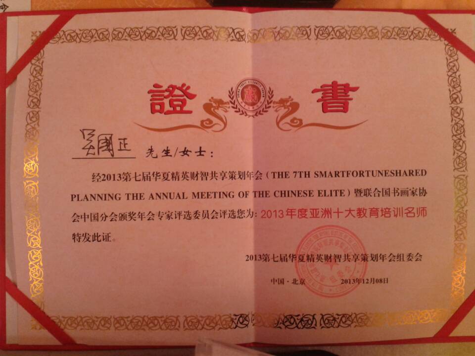 - 吳國(guó)正老師榮獲2013年亞洲十大..