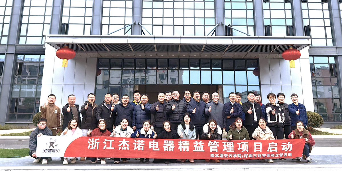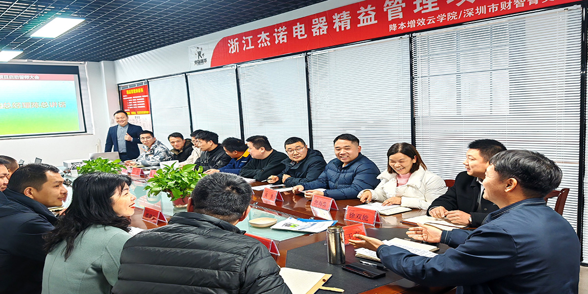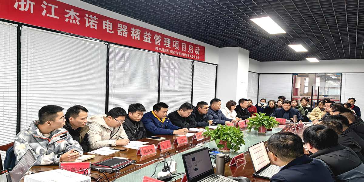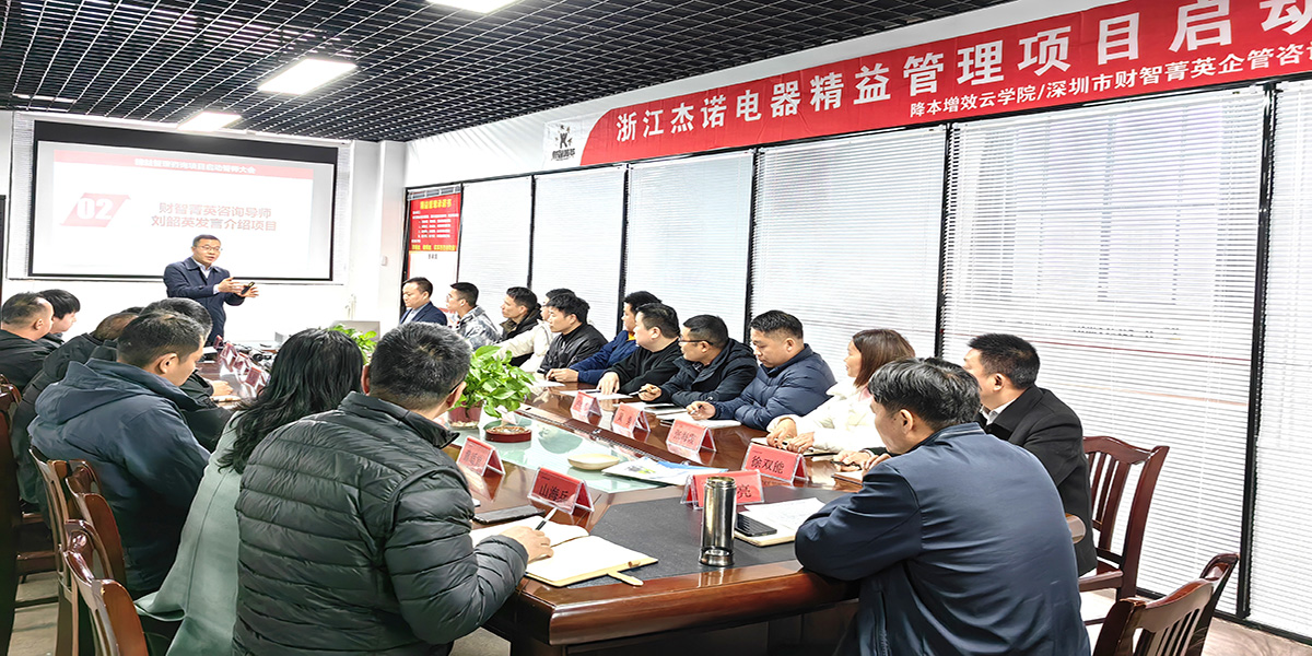 2024年3月6日,浙江杰諾電器精益管理項(xiàng)目啟動(dòng),杰諾電器董事長(zhǎng)、總經(jīng)理、總監(jiān)、經(jīng)理等30多位經(jīng)管人員及降本增效云學(xué)院(深圳市財(cái)智菁英咨詢)3位咨詢導(dǎo)師出席了項(xiàng)目啟動(dòng)會(huì)。