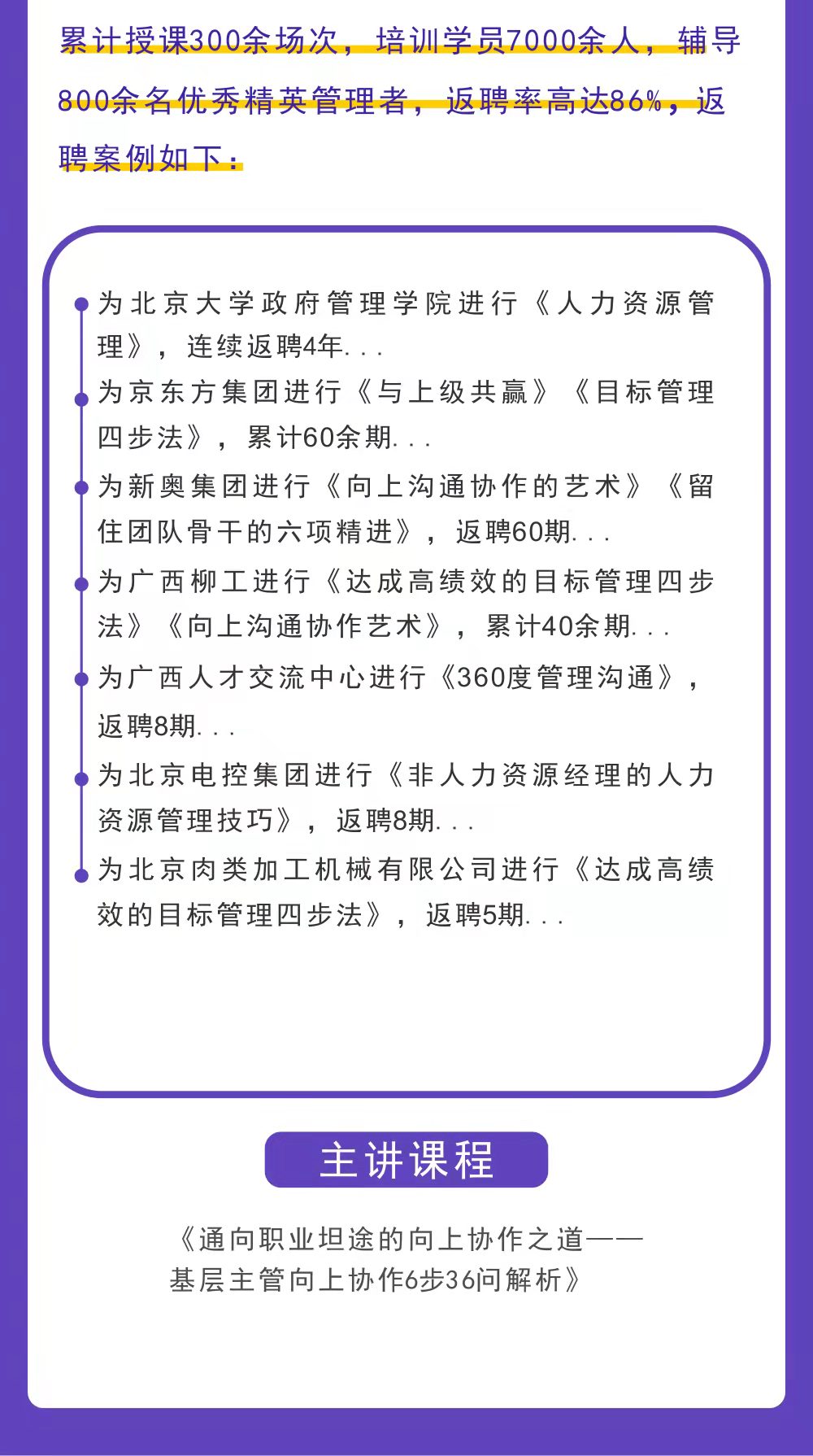 連續(xù)2年任京東方領(lǐng)導(dǎo)力研修班副班主任,助力6名高層管理者成為七大業(yè)務(wù)板塊 CEO 。