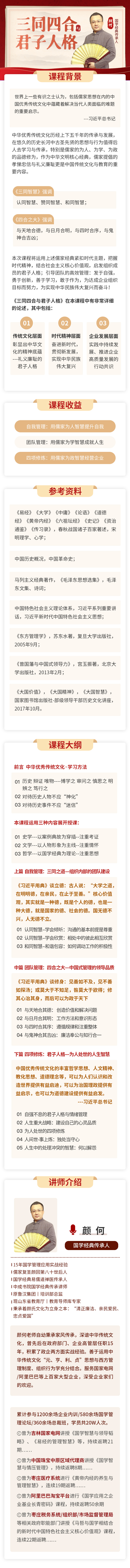 15年國學(xué)管理應(yīng)用實戰(zhàn)經(jīng)驗1儒家復(fù)圣顏回第八十世后人國學(xué)經(jīng)典易儒道禪醫(yī)傳承人|中成書院國學(xué)經(jīng)典傳承講師1原魯漢集團(tuán)|培訓(xùn)部總監(jiān)|現(xiàn)山東省教育廳|教育導(dǎo)師庫專家
