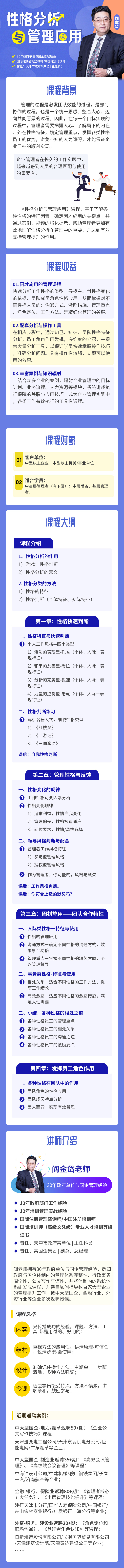閻老師擁有30年政府單位與國企管理經(jīng)驗,悉知政府與國企體制內(nèi)的管理體系完整性、行政事務(wù)周全性、公文寫作嚴(yán)謹(jǐn)性、并將體制內(nèi)的系統(tǒng)體系研發(fā)成課程,并親自顧問指導(dǎo)數(shù)百家大型企業(yè)的管理提升工作,被中大型國企、金融行業(yè)、外資行業(yè)等企業(yè)多次返聘授課。