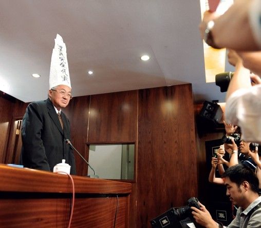他頭戴“草民完全無罪”的紙帽子出場,并讓媒體拍照三分鐘。并說:“冤案古代有,未來也會(huì)有,但是有冤案都不敢出來喊,說明里面有問題,這幾位貪官污吏太兇殘了……”