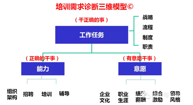 這個(gè)模型是一個(gè)培訓(xùn)經(jīng)理心中要有的一個(gè)綜合性模型。經(jīng)這個(gè)模型一走,相信很多問題的發(fā)生都不是員工能力引起的。那咱培訓(xùn)就不能做了嗎?顯然不是,如果確實(shí)是流程問題,那么我們可以幫助主管部門開展流程梳理的培訓(xùn);如果是員工輔導(dǎo)不到位,我們可以引進(jìn)中高管輔導(dǎo)能力提升的項(xiàng)目。